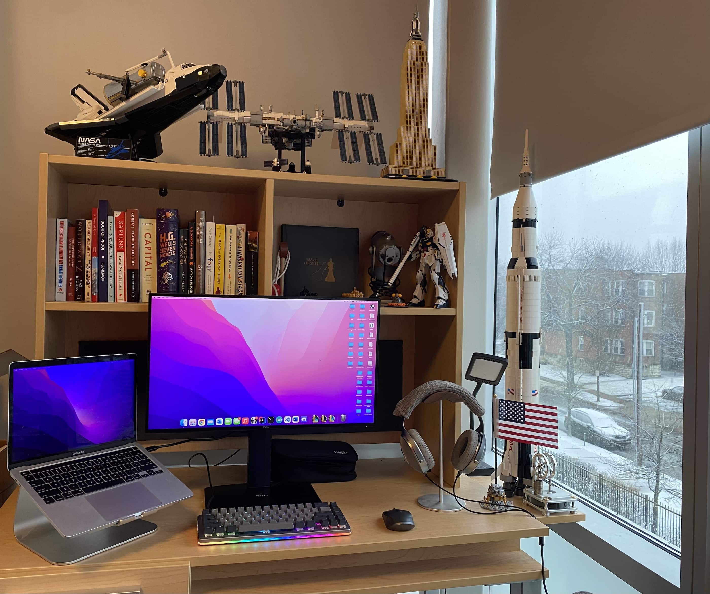 The setup, based mostly round a 2020 13-inch Intel-powered MacBook Professional and a 25-inch Dell UltraSharp USB-C monitor, does certainly look fairly cozy. Whereas the inside is warmed by some fancy gadgetry, you may see a wintry cityscape outdoors the window.