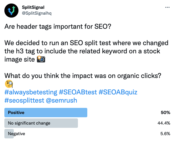 On all 1,793 take a look at pages, we modified the aforementioned H3 to “Associated picture searches.” The take a look at ran for 21 days with a confidence degree of 97% (though solely 15% of the management pages had been recrawled in the course of the time interval for testing).